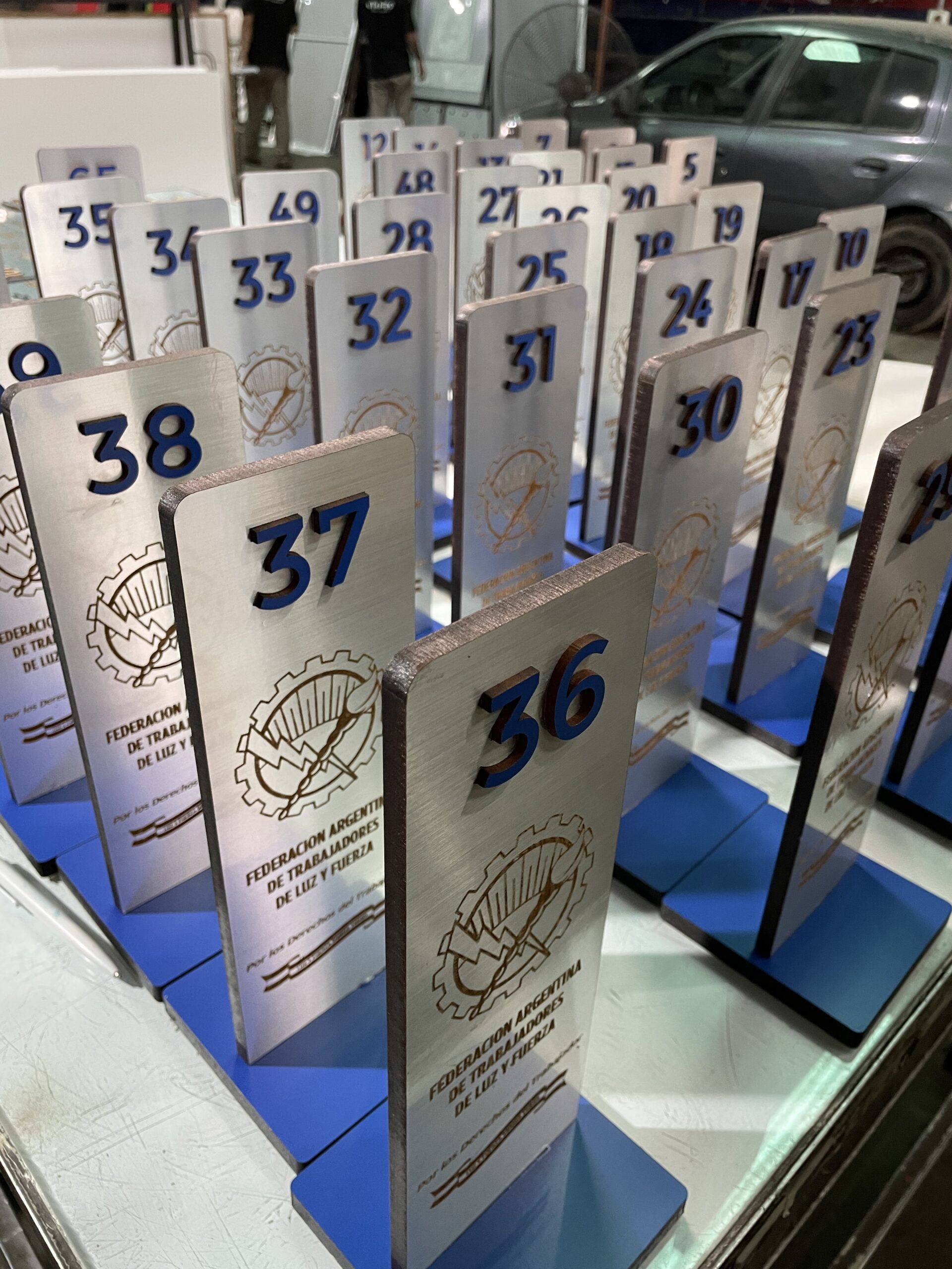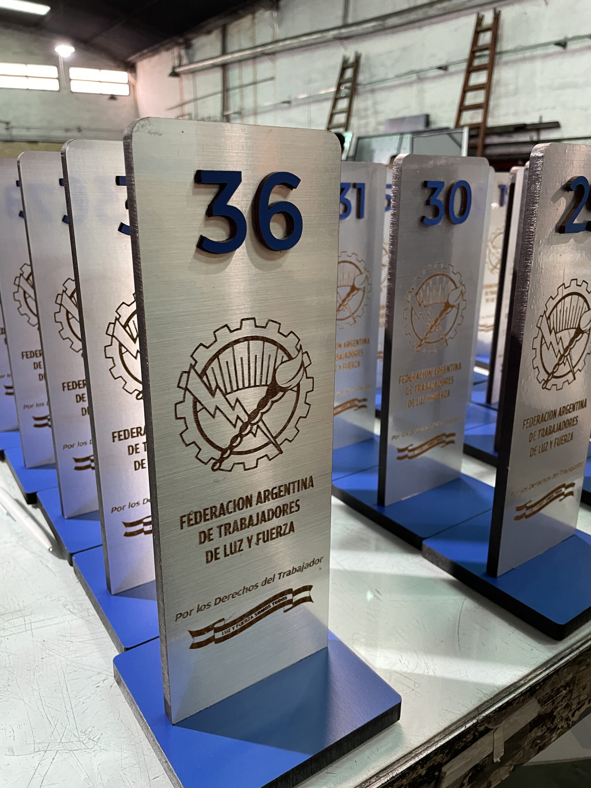 Desarrollamos piezas visuales listas para uso en eventos, activaciones, stands y premiaciones. Producción rápida, diseño a medida y acabados premium.